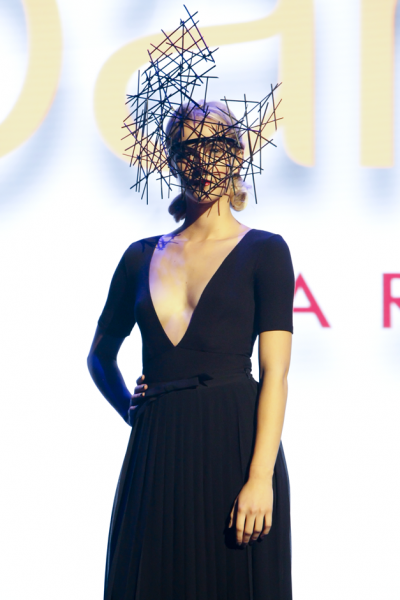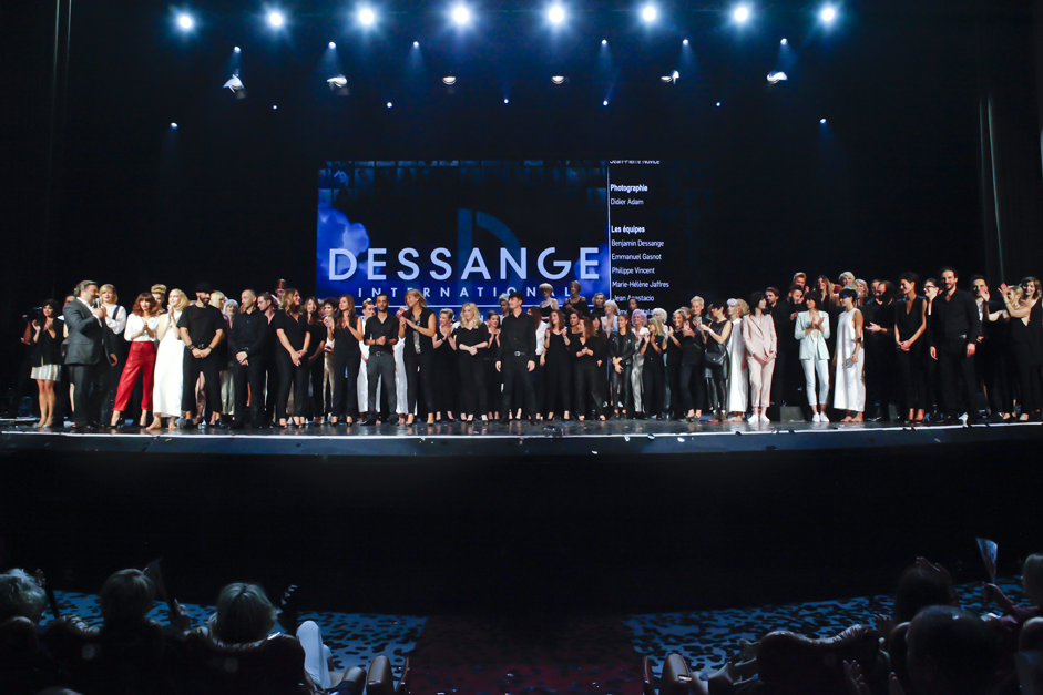 La marque Dessange fait finalement son apparition avec la présentation de la nouvelle collection puis avec plateau spécial formation, l’un des points clés de la stratégie de la maison de coiffure. Le spectacle se termine en beauté avec la sublime prestation de Claudia Zocco, coiffeuse studio Dessange et experte attaches et chignons. Elle tresse les cheveux du modèle sur son visage puis la retourne afin de l’inverser. Une attache novatrice, présentée comme une véritable oeuvre d’art à l’image de ce show qui se conclut sous un tonnerre d’applaudissements.