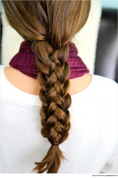 - Une fois toute la longueur des cheveux torsadées, attachez votre « corde » de cheveux avec un élastique.