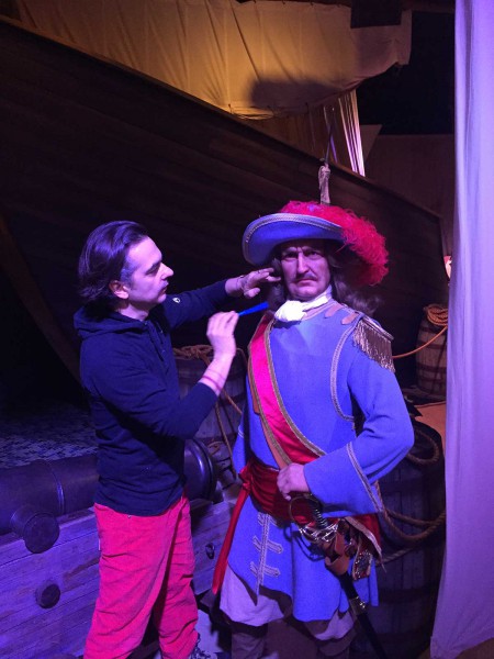 Stéphane travaille en étroite collaboration avec Julie Charade, styliste ; Camille Pinto, coiffeuse ; et Anne, responsable des retouches et réparations. Comme les statues ne doivent pas rester trop longtemps en atelier, il est impératif de travailler ensemble sur la même statue. Un roulement est effectué pour que les 120 personnages soient constamment irréprochables.