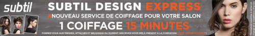 À partir du 2 mai, les salons SUBTIL pourront proposer un nouveau service de coiffage rapide afin que leurs clientes s’habillent, en toute occasion (entretien professionnel, dîner en amoureux, anniversaire…) d’un coiffage de star : tresse, attache, volume dompté, brushing de rêve…, une multitude de possibilités pour 1 coiffage en 15 minutes à un prix accessible, sans shampooing ni coup de ciseaux !