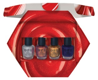 Esprit ludique et festif pour OPI avec un coffret en édition limitée regroupant 4 minivernis Nail Lacquer (3,75 ml chacun). Présentées dans un étui façon sucre d’orge, ces teintes exclusives conjuguent brillance, créativité et esprit de fête. Un petit format parfait pour offrir ou s’offrir une manucure de saison à prix doux.