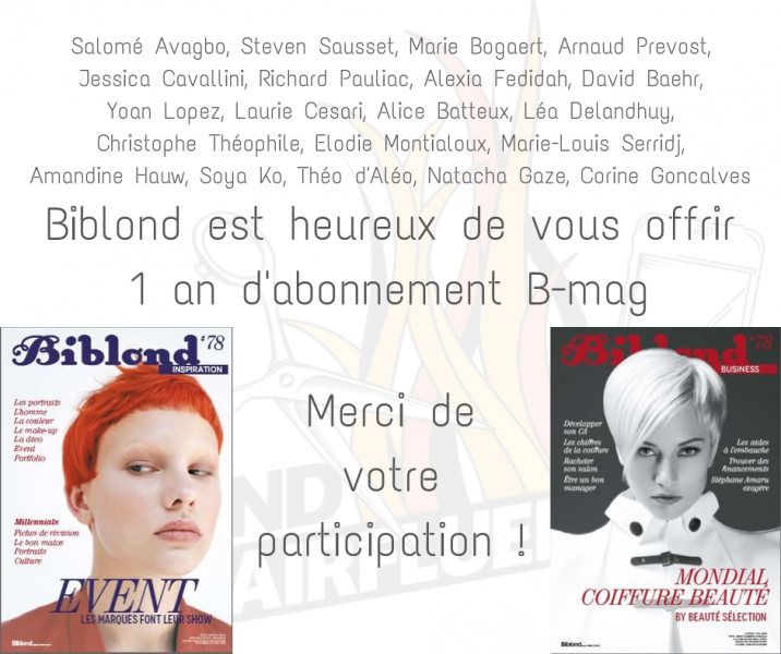 The Hairfluencers 2019 : Bravo ! par Christel Guiolet 30/09/2019 Envoyez Twittez Partagez Christel Guiolet 374 posts Taille du texte: A A A Merci à tous pour votre inscription à Biblond The Hairfluencers 2019. Félicitations aux 20 candidats sélectionnés par le jury lors des pré-sélections. Catégories: Actualités Envoyez Twittez Partagez Christel Guiolet 374 posts Précédent Suivant Plus d'actualités Biblond décembre 2025 : le best of d’une profession qui ne lâche rien ! Rejoignez le groupe Dessange International ! Recyclage des cheveux : mouvement de fond ou conséquence de la covid-19 ? Partez à la conquête des jeunes grâce aux nouvelles technologies ! 1 marque, 1 histoire : Jacques Seban