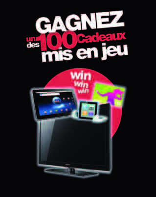 En plus d’économiser 15 %, vous participez au tirage au sort pour gagner un iPad d’Apple, et vous relayez auprès de vos clients un concours qui pourra leur permettre de gagner un téléviseur Samsung LCD 3D de 102 cm.