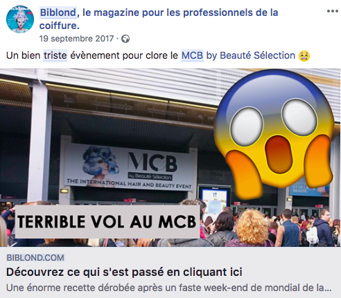 200 000 euros, c’est la somme rondelette qui a été dérobée à une société de coiffure, à la fin du Mondial Coiffure Beauté by Beauté Sélection 2017. Il y a un an déjà, Biblond dévoilait l’étonnant larcin…