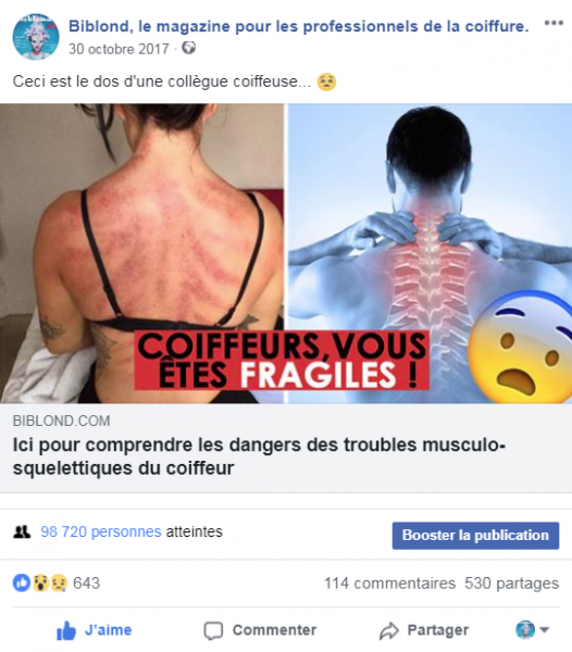 Le post Facebook sur les troubles musculo-squelettiques du coiffeur