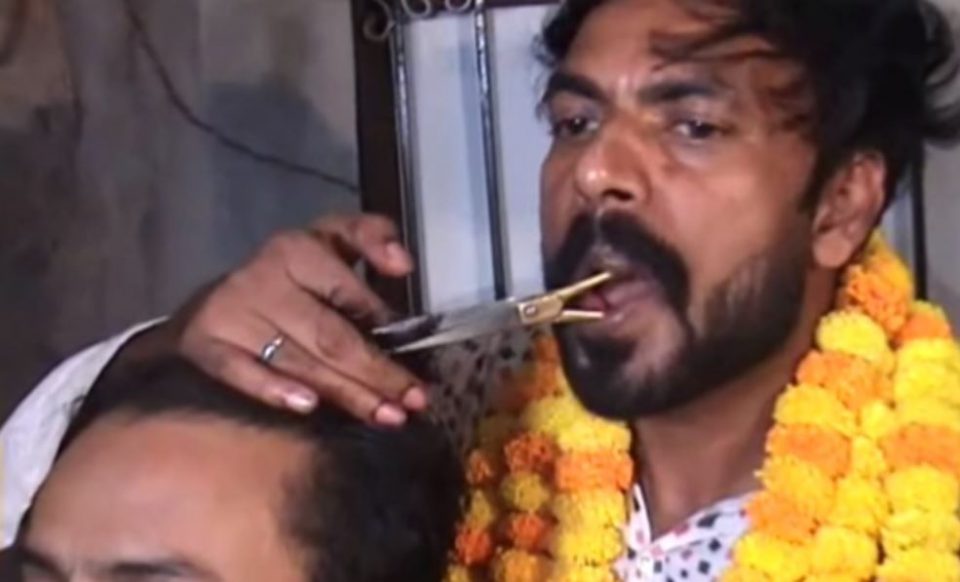 À la suite d’un accident survenu en 2006, Ansar Ahmad, un coiffeur indien, a dû réapprendre à travailler. Handicapé au niveau des mains il n’a pas voulu arrêter et a réappris à travailler. Sauf que maintenant c’est avec la bouche que le coiffeur exerce sa passion.