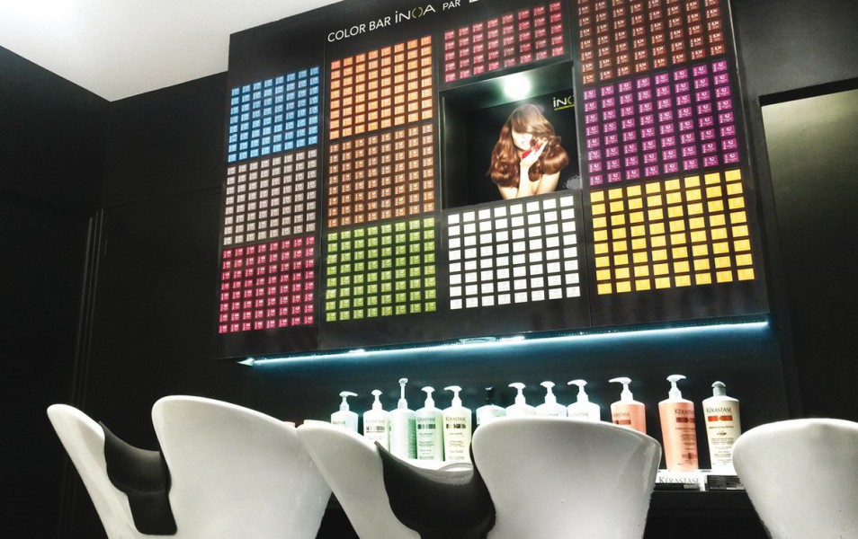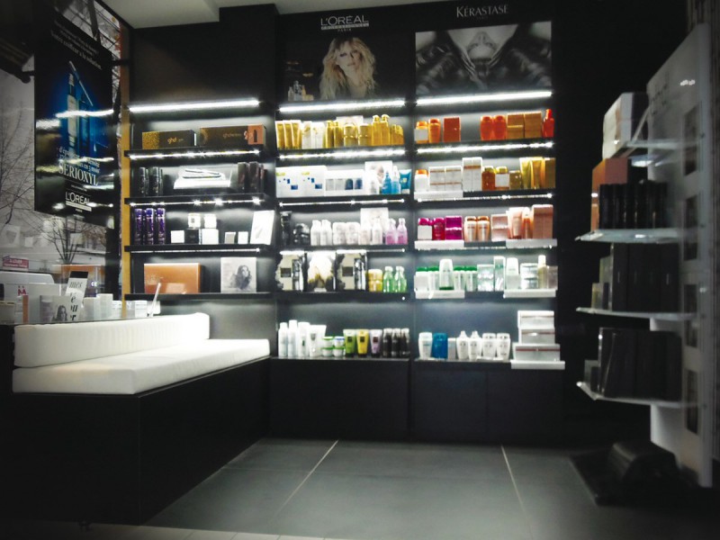 Grâce au nouvel agencement, une place plus large est accordée à la revente de produits et accessoires des marques – L’Oréal Professionnel Paris, Kérastase, Schwarzkopf Professional, ghd. Pour que chaque moment soit un instant de plaisir, les services ont été revisités