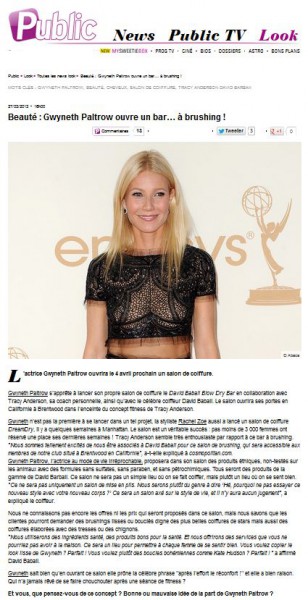 Après chanteuse ou mannequin, la nouvelle lubie des stars serait-elle de devenir… coiffeuse ? Gwyneth Paltrow, en tout cas, a franchi le pas. Associée à son coach perso et au coiffeur Babaï, la belle ouvrira son salon de brushing dans l’espace fitness créé par le coach en Californie, selon le site public.fr. Reste à connaître les prix des prestations…
